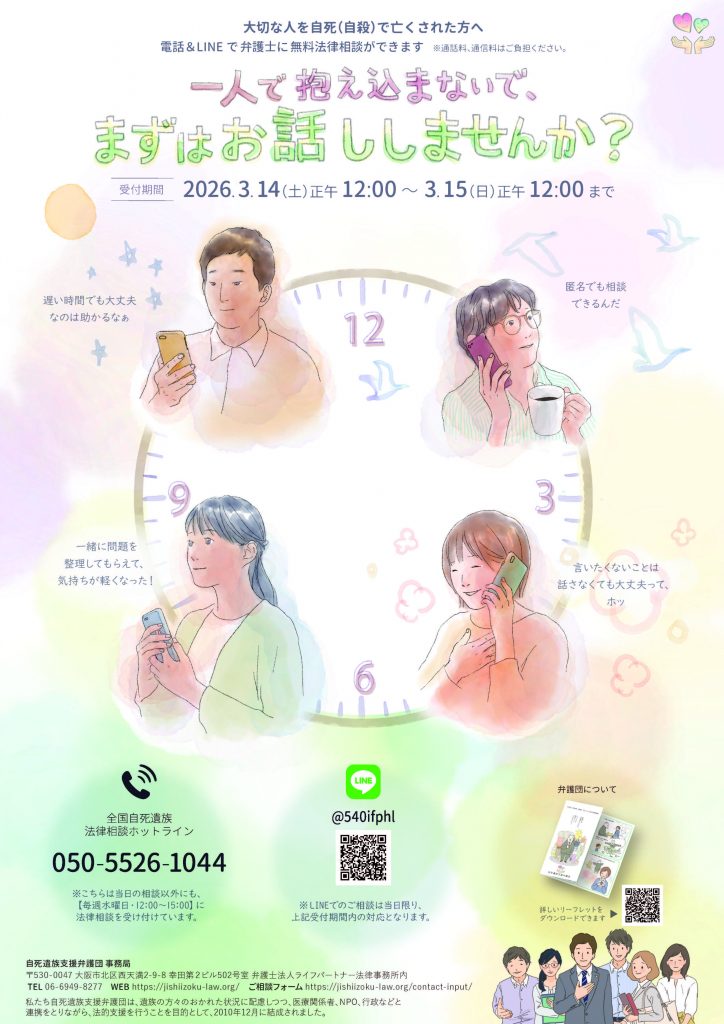 佃祐世弁護士が所属する自死遺族支援弁護団が無料法律相談を実施します。